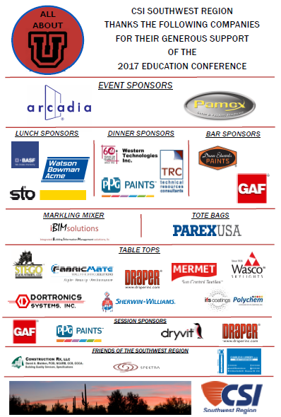 The 2017 Conference was held at the beautiful Lodge on the Desertin warm Tucson, Arizona. ALL ABOUT U featured valuable AIA CEU accredited education offerings for both young and seasoned professionals, as well as sessions for CSI certifications and Chapter leadership. Thanks to sponsors and participants for a great conference. Las Vegas in 2018!